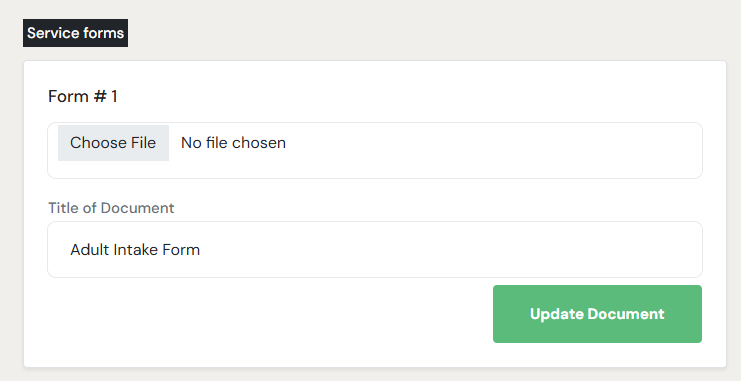 You can attach up to four intake forms to each service. These can include any service-related forms you would like the patient to download.