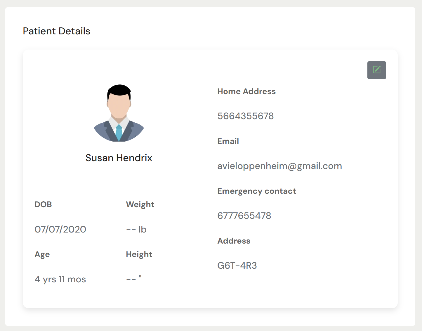 Providers can update a patient's details through the Patient Overview page. To do this, navigate to your Dashboard and select the Customers tab. Then, click on the Patient Overview for the specific patient you wish to update. Once you're on the patient's Patient Overview page, click the edit icon to modify key information.