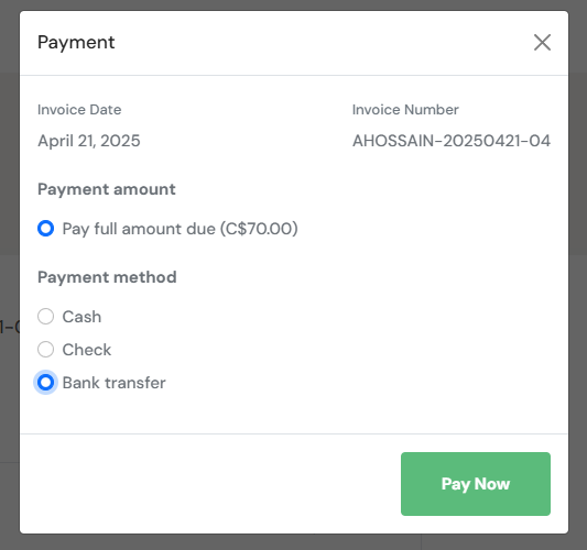 When you process a payment on your end, the invoice status will update to Paid, and this information will be reflected in your revenue tracking visible on your Dashboard.