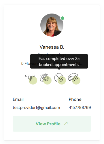 Your provider card serves as a condensed version of your client portal, appearing in the search results on the Materia+ Marketplace. Each provider has the option to showcase up to 4 selected badges and or accolades on their provider card.