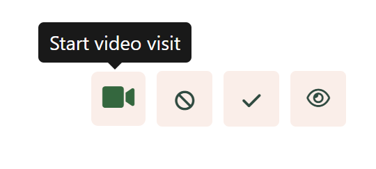 To begin a virtual appointment, navigate to Appointments and click the video icon on the right of the appointment you wish to initiate.