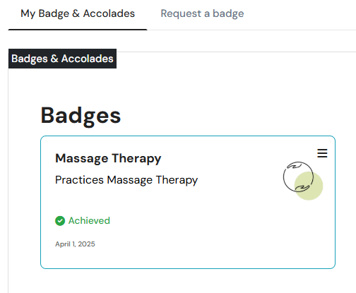 Badges are the various medical and therapeutic modalities that providers hold on the Materia+ Marketplace.