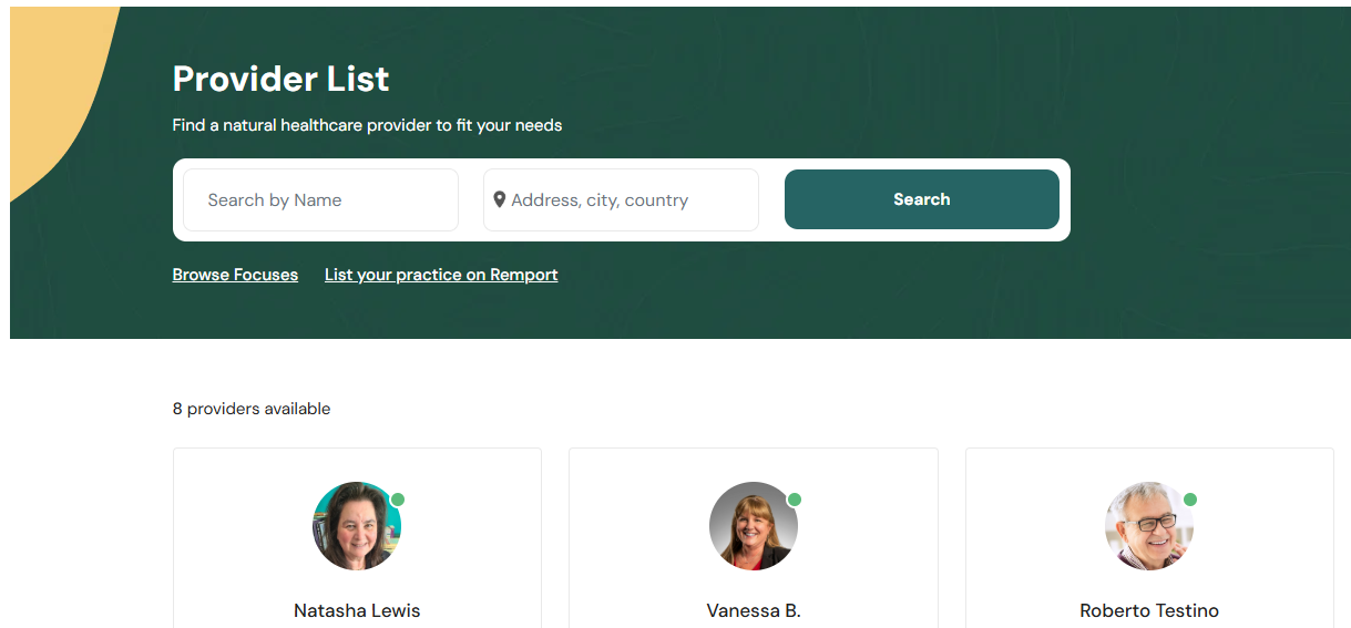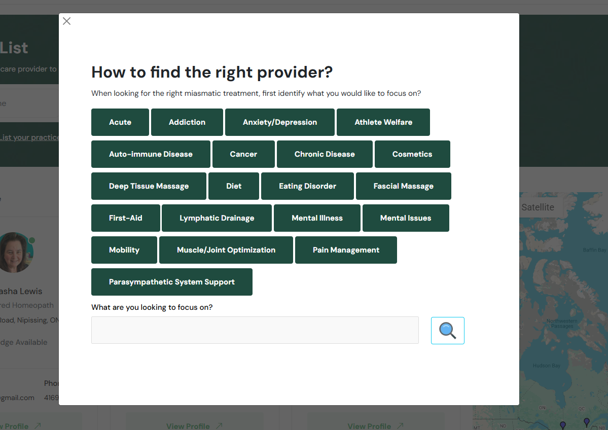 Patients search for new providers by specifying their specific or over-arching health need(s), and location.