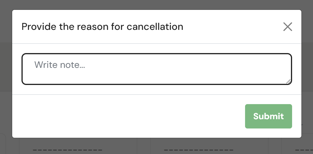 Next, you'll be prompted to enter a cancellation note. This allows you to explain the reason for the cancellation and share any additional information you'd like the patient to receive.